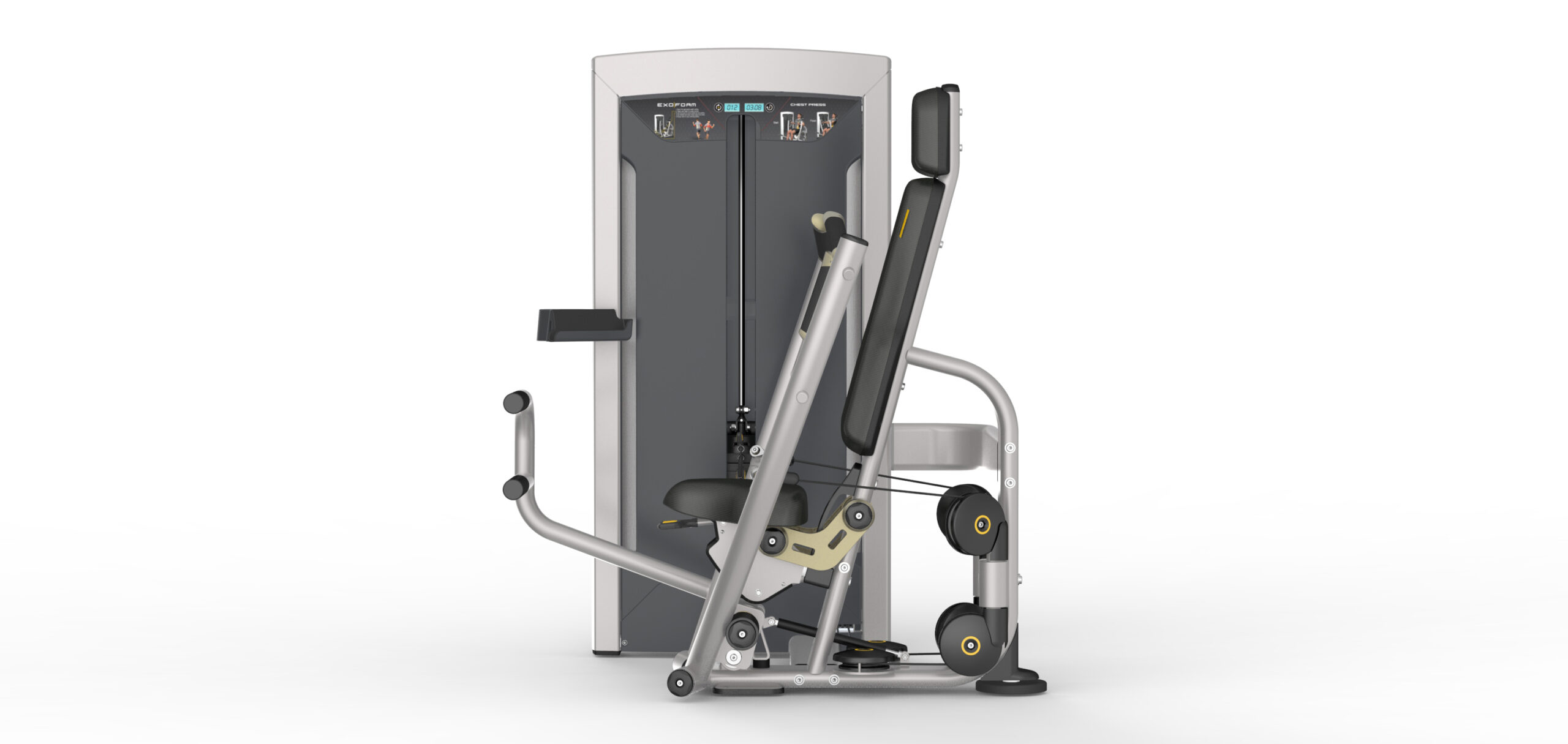 Posilňovací stroj IMPULSE – tlaky na prsia v sede je skvelým riešením na efektívne precvičenie a spevnenie prsného svalstva. Konštrukcia stroja zaručuje maximálnu bezpečnosť a komfort pri cvičení. Okrem prsného svalstva aktivuje aj bicepsy, tricepsy a svaly v oblasti brucha. Na rozdiel od funkčného tréningu minimalizuje zaťaženie kĺbov. Používateľov poteší intuitívne ovládanie, nastaviteľné sedadlo a ergonomické dvojité úchopy, vďaka ktorým možno cielene precvičovať rôzne svalové skupiny.