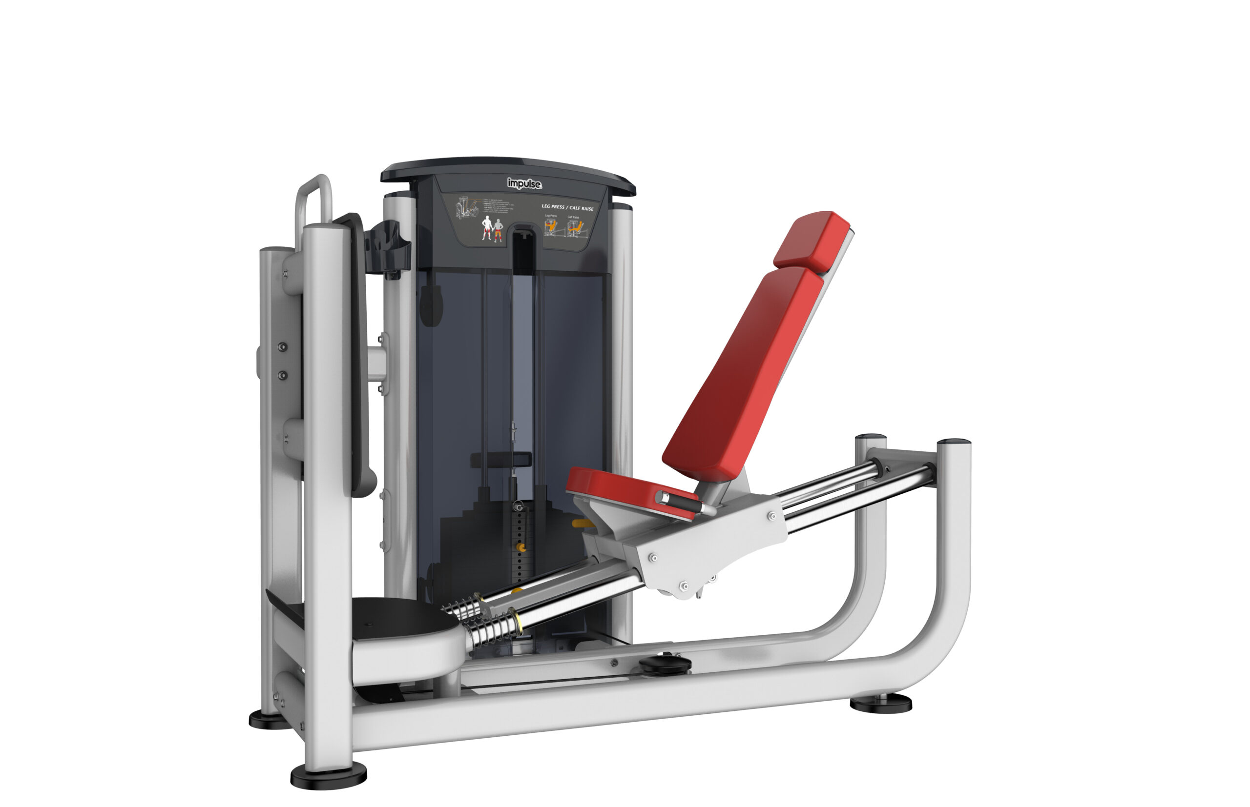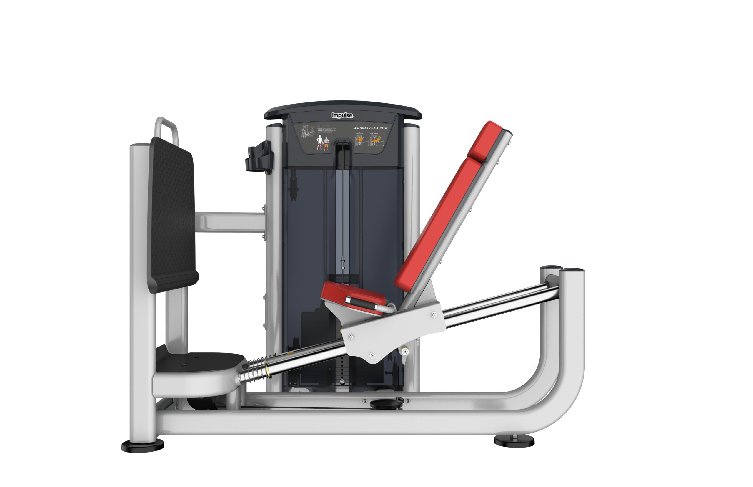 IMPULSE IT9510 Leg Press je profesionálny posilňovací stroj s výberom záťaže pomocou kolíka, určený primárne na precvičenie štvorhlavého stehenného svalu (quadriceps femoris) a sekundárne na aktiváciu sedacích svalov (gluteus maximus) a lýtkového svalu (musculus gastrocnemius).