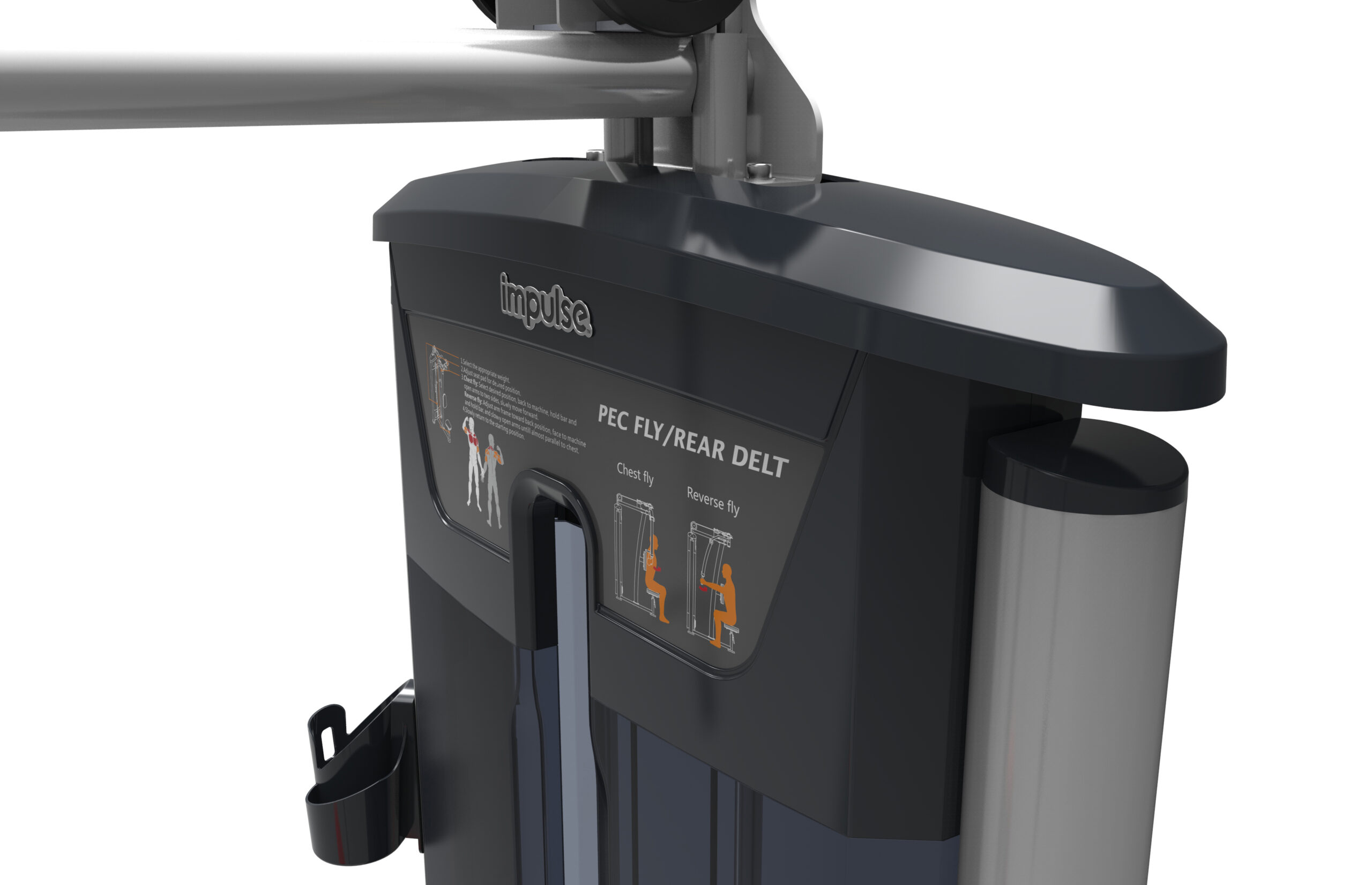 IMPULSE IT9515 Pec Fly/Rear Delt je profesionálny posilňovací stroj so selektorovou záťažou, určený predovšetkým na bezpečné posilňovanie prsných svalov, širokého svalu chrbta (latissimus dorsi) a deltových svalov.